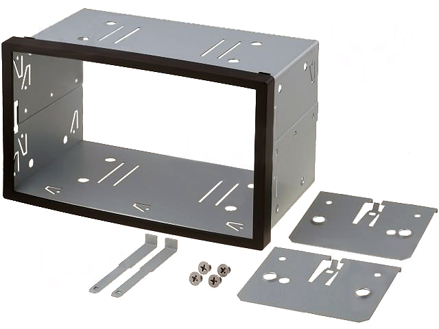Pusstaltis 2DIN automagnetolai su isemimo raktais ir plastmasiniu apdailos remeliu.
