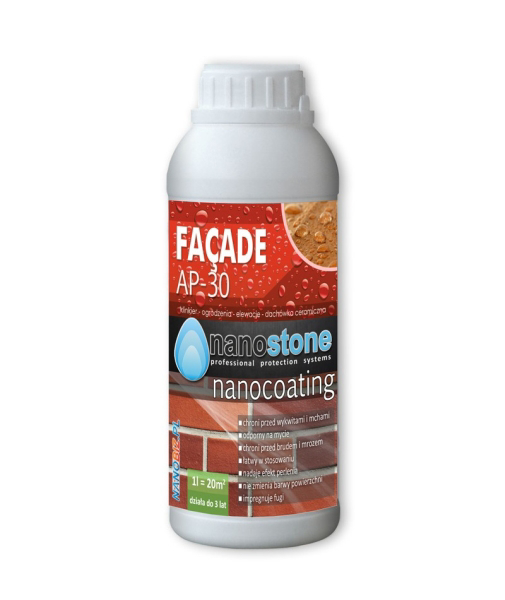 NANOSTONE AP30 yra alkoholio pagrindu sukurtas junginys pasizymintis dideliu skvarbumu. Jis skirtas apsaugoti pavirsius, suteikiant jiems savybe pastoviai islikti svariais. Produkto sudetyje nera vasko, silikono, polimeru ar kitu organiniu tirpikliu, taciau jis daug geriau nei kitos priemones apsaugo padengtus akmens fasadus. Produktas nepakeicia pavirsiu spalvos ir apsaugo nuo mikroorganizmu (pelesiu, grybeliu, dumbliu).