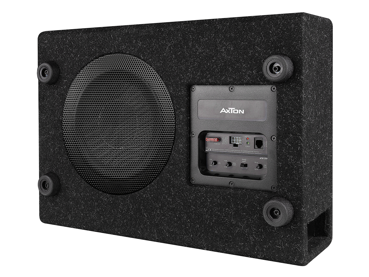 zinoma, be optimaliu tvirtinimo galimybiu, nepamirštamos ir garso charakteristikos. Kaip ir galima tiketis iš AXTON, ATB120A paryškina muzika sodriu ir melodingu bosu, kuris, zinoma, prireikus gali isijungti. 100 W RMS stiprintuvo modulis yra gerai apsaugotas apatineje korpuso puseje. Visus nustatymus, tokius kaip zemuju dazniu filtras, faze, stiprinimas ir zemuju dazniu stiprinimas, galima lengvai reguliuoti. Aukšto lygio iejimai su automatinio ijungimo funkcija yra naudingi jungiant prie gamykliniu radijo imtuvu (be REM išvesties). zemuju dazniu lygi galima patogiai reguliuoti iš vairuotojo sedynes, naudojant zemuju dazniu lygio nuotolinio valdymo pulta.