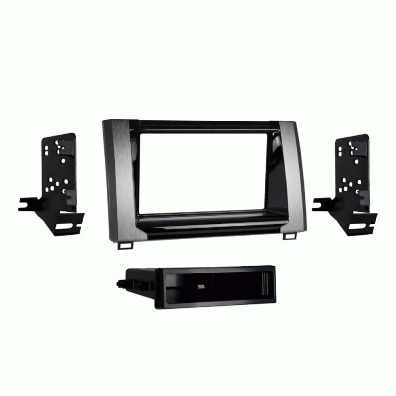 Remelis automobilinei magnetolai. Skirtas keiciant gamykline magnetola i standartine 1-DIN arba 2-DIN. Sidabro spalvos. Stalciukas ir visi reikiami tvirtinimo elementai komplekte. Tinkamas siems automobiliams: • Toyota Tundra 2014->