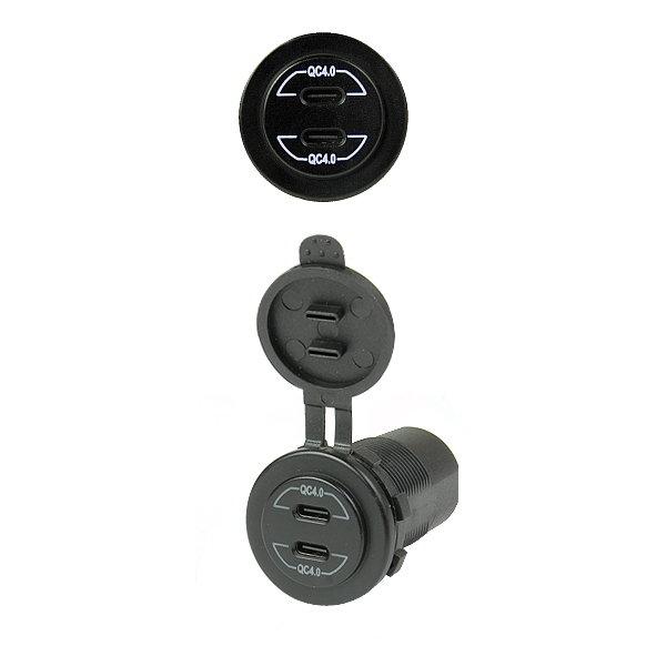 Automobilinis USB su dviem lizdais: QC4.0 PD Type USB C 3.0A – skirtas greito ikrovimo irenginiams. Power Delivery (PD) technologijos deka galite ikrauti nešiojamaji kompiuteri, planšetini kompiuteri ar išmanuji telefona maksimalia galia. Integruotas integrinis grandynas atpazista automatiškai prijungta irengini, kuris igalina efektyvu ir optimalu ikrovimo procesa. Maitinimo šaltinis, skirtas naudoti transporto priemoneje, priekaboje ar sunkvezimyje.